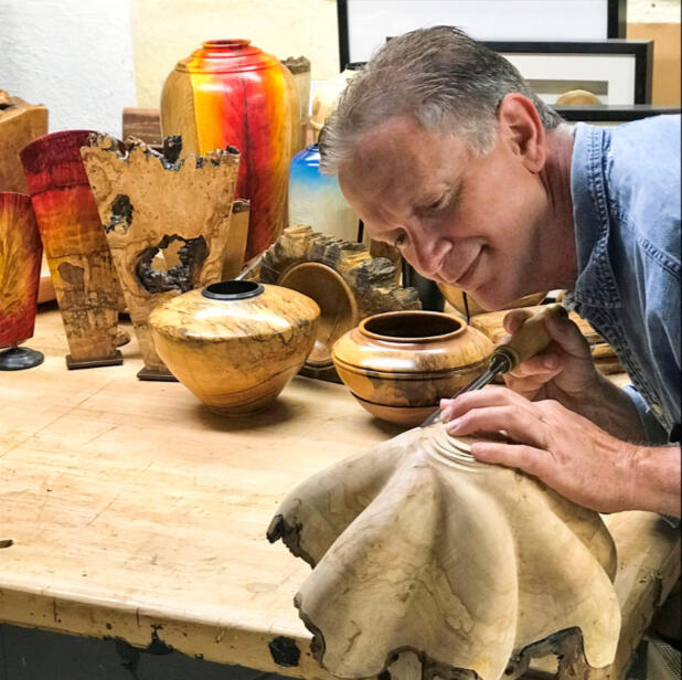I create art with wood.A simple statement, but a practice full of opportunity for exploration.Wood is a wonderful artistic medium . . . An organic tissue – it is a life lived. Every chunk of wood carries a unique story written in varying colors, grain patterns, stresses, defects, and even decay.It is my privilege - and joy - to help tell that story . . . to engage with the wood to create an object that is beautiful to see and compelling to hold. Almost all of my material is “rescued” - urban trees at the end of their life, or casualties of a storm or a landscaping redesign. It is deeply satisfying to work with a piece of wood from a mature tree, often many decades old, and discover - and reveal - its history.Most of my pieces start on a lathe – taking a block of spinning wood and cutting away just enough to create a pleasing form and expose the inner beauty previously hidden within the tree. Once the turning is complete, I often enhance the form with a combination of power and hand tools (carving gouges, rasps, rotary burrs). I may also add color, surface texture, and metal or other media. Finally, I apply one of several finishes to enhance and protect the piece. But always with the goal to retain the essence of the original piece of wood.The result is a truly unique gift from nature. The warmth and variations of the colors, the silky smoothness of the surface, and the play of light reflected in the figured grain . . . they all combine to create a wonderful visual and tactile experience. I hope you enjoy!